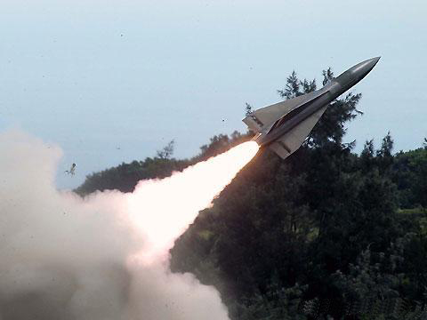 臺(tái)軍三軍聯(lián)合實(shí)彈射擊,發(fā)射鷹式飛彈。圖片來(lái)自臺(tái)媒