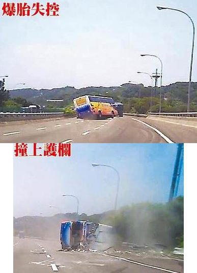 從民眾提供的行車記錄器影像可推斷,司機(jī)當(dāng)時(shí)在高速行駛中,車輛左后輪壓到異物爆胎,車體左搖右晃,司機(jī)無(wú)法控制車輛,導(dǎo)致側(cè)滑撞到路旁護(hù)欄翻車。而真正肇事原因,需等待臺(tái)灣“交通事故委員會(huì)”鑒定厘清。