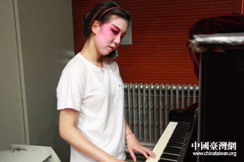 在后臺彈鋼琴的昆曲演員。(中國臺灣網(wǎng) 孟雅詩 攝)