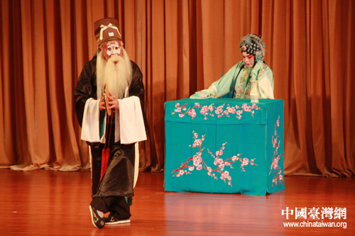 來自臺灣師范大學昆曲研究社的鄭安尚在《長生殿·小宴》中扮演高力士。(中國臺灣網(wǎng) 孟雅詩 攝)