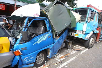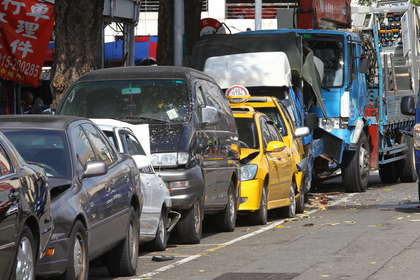 臺(tái)中一大貨車(chē)連撞7車(chē)。圖片來(lái)自臺(tái)媒