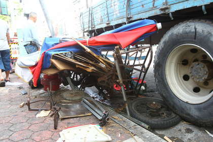 拼裝的三輪車(chē)被撞壞。圖片來(lái)自臺(tái)媒