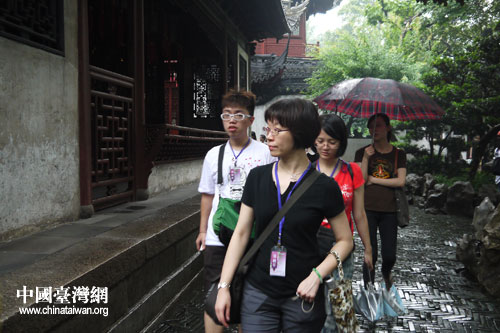 7月14日,來(lái)自海峽兩岸的40多名青年學(xué)生參觀豫園。(中國(guó)臺(tái)灣網(wǎng) 李丹 攝)