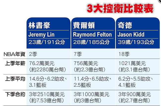 由于尼克斯日前才剛簽下老牌控衛(wèi)奇德(Jason Kidd),昨再挖來(lái)費(fèi)爾頓,隊(duì)上已有兩名可以打先發(fā)的控衛(wèi),代表已不太可能再留下林書(shū)豪,根據(jù)ESPN.com引述林書(shū)豪友人的說(shuō)法,林書(shū)豪對(duì)尼克斯換來(lái)費(fèi)爾頓“非常訝異”,因?yàn)樗恢眻?jiān)信尼克斯會(huì)跟進(jìn)價(jià)碼留下他,林書(shū)豪高中教練戴朋布洛克(Peter Diepenbrock)也透露:“林書(shū)豪非常喜歡紐約球迷,他沒(méi)想過(guò)尼克斯會(huì)不留他,他非常震驚。”《紐約郵報(bào)》則指出:“林書(shū)豪賺到了高額合約,但再也回不去尼克斯了!