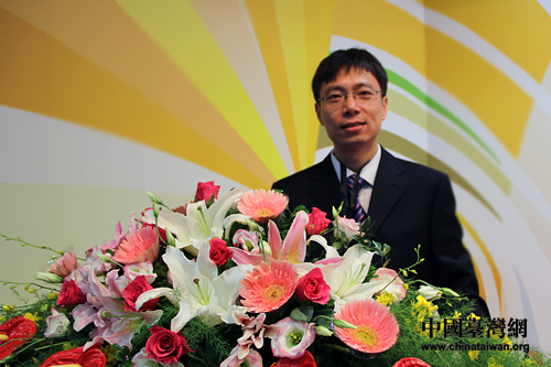 北京晨報(bào)主編施劍松作“第二屆海峽兩岸大學(xué)生網(wǎng)絡(luò)商務(wù)創(chuàng)新應(yīng)用大賽”推介。(中國(guó)臺(tái)灣網(wǎng) 董子譽(yù) 攝)