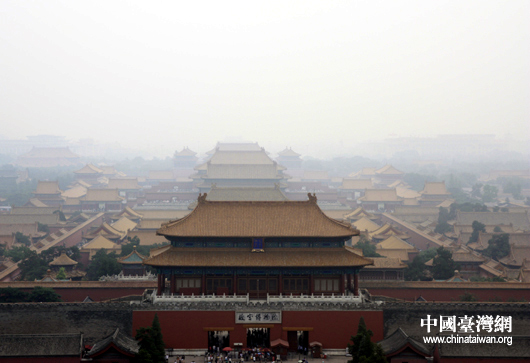 在景山公園高處俯瞰故宮,可以看到北京中軸線。(中國臺(tái)灣網(wǎng) 黃艷艷 攝)