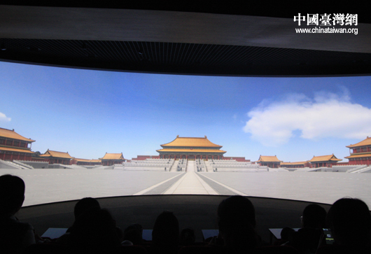 同學(xué)們在故宮觀看電影《數(shù)字故宮 天子的宮殿》。(中國臺灣網(wǎng) 黃艷艷 攝)