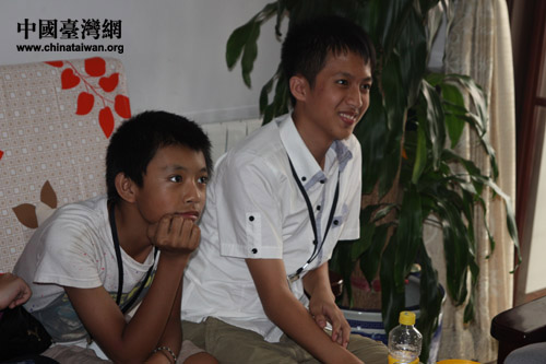 兩位臺(tái)灣同學(xué)被相聲吸引。(中國(guó)臺(tái)灣網(wǎng) 黃艷艷 攝)