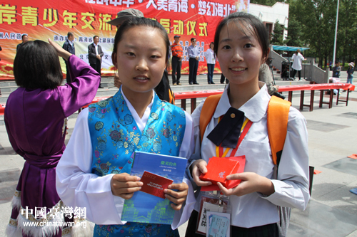 海北臺(tái)灣兩地學(xué)生互相交換紀(jì)念品(中國(guó)臺(tái)灣網(wǎng) 趙輝 攝)