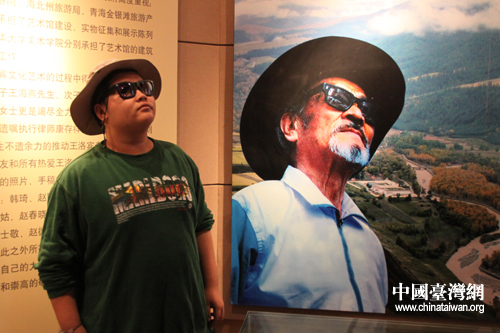 王洛賓音樂藝術(shù)紀(jì)念館內(nèi),一位北京同學(xué)將王洛賓神態(tài)模仿的惟妙惟肖(中國臺(tái)灣網(wǎng) 趙輝 攝)