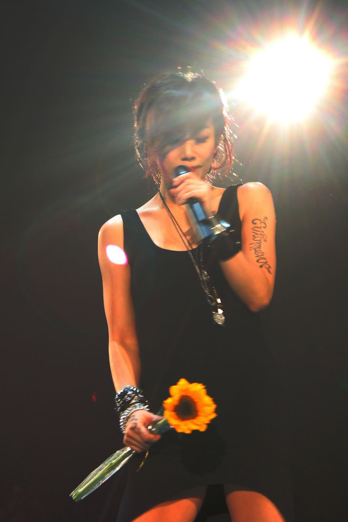 唱到第八首歌時,林憶蓮才停下來跟歌迷打招呼,并問歌迷要說華語還是廣東話,結(jié)果現(xiàn)場一致高喊希望她以母語說話,她笑說歌迷非常貼心。
