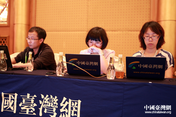 中國臺灣網(wǎng)記者在第八屆兩岸經(jīng)貿(mào)文化論壇閉幕式現(xiàn)場進行文字直播。(中國臺灣網(wǎng) 于斯文 攝)