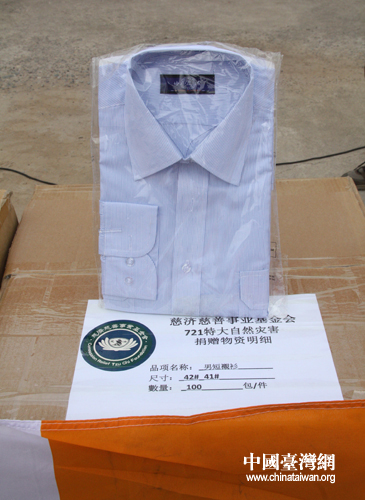 臺(tái)灣慈濟(jì)基金會(huì)捐助的襯衣。(中國臺(tái)灣網(wǎng)記者 王怡然 攝)