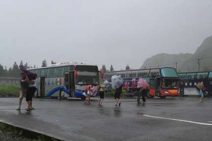 中國臺灣網(wǎng)7月31日消息 據(jù)臺媒報(bào)道,中度臺風(fēng)蘇拉逼近臺灣,花蓮縣豐濱鄉(xiāng)東海岸石梯坪風(fēng)景區(qū)風(fēng)強(qiáng)雨驟,大陸游客團(tuán)今天仍不畏風(fēng)雨,堅(jiān)持下車觀浪。強(qiáng)風(fēng)陣陣吹襲連站都站不穩(wěn),緊握雨傘當(dāng)盾牌、逆風(fēng)前進(jìn),游興絲毫未減,甚至與臺風(fēng)一樣有增強(qiáng)趨勢。