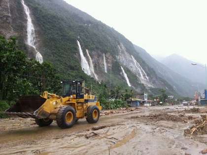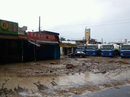 泥流沖刷至路面及多處民宅。圖片來自臺媒