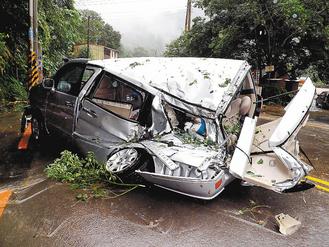 中國臺灣網(wǎng)8月2日消息 據(jù)臺灣《聯(lián)合晚報》報道,臺風蘇拉挾帶強風暴雨襲臺,今天除臺東外,島內(nèi)各縣市均停班停課,但在一線報道臺風災情的媒體記者卻照常工作,甚至深入危險的山區(qū)采訪。今天清晨,臺灣“壹電視”一部采訪車在新竹縣橫山鄉(xiāng)與尖石鄉(xiāng)交界、120線28公里處被巨石砸中,車后半部全被砸毀,當時2名記者剛好下車采訪,車上只有一名司機,幸運的是車毀人平安。