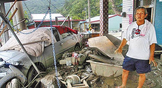 和中部落災(zāi)民林漢吉回到土石掩埋的家園,慶幸和家人跑得快,逃過一劫。(圖片來自臺(tái)媒)