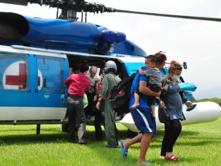 宜蘭縣長林聰賢昨天上午率領(lǐng)大同鄉(xiāng)長陳成功與多名縣府主管,攜帶大量物資與干糧,搭乘直升機(jī)前往南山部落視察,發(fā)送物資。直升機(jī)上午也陸續(xù)從南山與四季部落載出上百名重癥病患、待產(chǎn)婦女及身體不適的民眾與孩童,協(xié)助就醫(yī)。