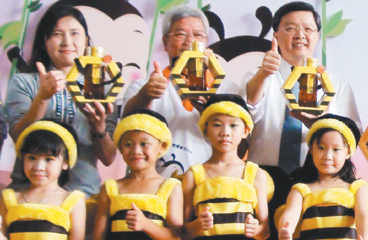 高雄市副市長(zhǎng)陳啟昱(后排右一)傳出與民政局長(zhǎng)曾姿雯(后排左一)已登記結(jié)婚,圖為兩人過去出席蜂蜜文化節(jié)活動(dòng)。(圖片來自臺(tái)灣《聯(lián)合報(bào)》)