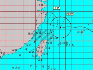 臺(tái)灣“氣象局”指出,今天凌晨5點(diǎn)中度臺(tái)風(fēng)“?钡闹行奈恢迷谂_(tái)北東北方370公里,近中心最大風(fēng)速每秒33米,約時(shí)速119公里,相當(dāng)于12級(jí)風(fēng),瞬間最大陣風(fēng)每秒43米!昂?迸_(tái)風(fēng)的7級(jí)風(fēng)暴風(fēng)半徑180公里、10級(jí)風(fēng)暴風(fēng)半徑50公里,預(yù)估明天凌晨5點(diǎn)的中心位置在臺(tái)北的北方340公里。