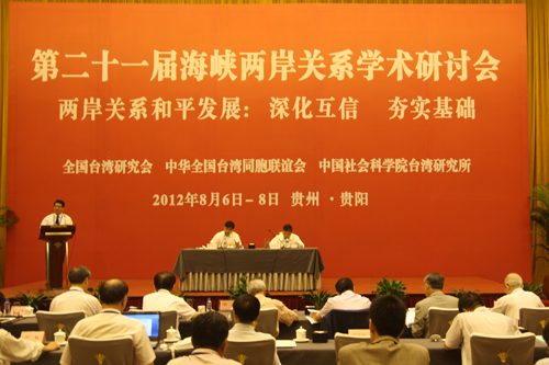 中國(guó)臺(tái)灣網(wǎng)8月7日貴陽(yáng)消息 以“深化互信 夯實(shí)基礎(chǔ)” 為主題的第21屆海峽兩岸關(guān)系學(xué)術(shù)研討會(huì),于8月7日上午在貴陽(yáng)圓滿閉幕。在為期兩天的研討會(huì)上,來(lái)自海峽兩岸及港澳地區(qū)的近百位兩岸關(guān)系研究專家齊聚一堂,暢所欲言,為兩岸關(guān)系和平發(fā)展建言獻(xiàn)策,研討會(huì)取得了圓滿成功。中華全國(guó)臺(tái)灣同胞聯(lián)誼會(huì)副會(huì)長(zhǎng)史茂林主持了閉幕式,研討會(huì)三個(gè)小組的代表在閉幕式上分別進(jìn)行了總結(jié)發(fā)言。中國(guó)社會(huì)科學(xué)會(huì)臺(tái)灣研究所所長(zhǎng)余克禮致閉幕詞。
