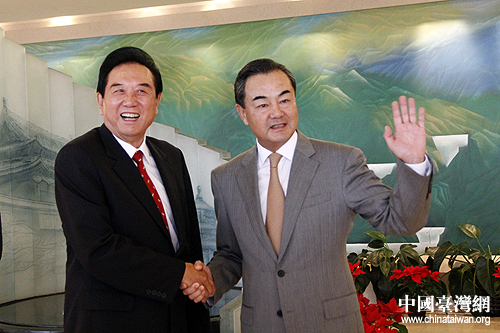 8日上午,中共中央臺辦、國務(wù)院臺辦主任王毅在首都機(jī)場為啟程前往臺北參加兩岸兩會領(lǐng)導(dǎo)人第八次會談的海協(xié)會會長陳云林送行。 (中國臺灣網(wǎng) 楊麗 攝)