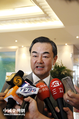 8日上午,中共中央臺辦、國務(wù)院臺辦主任王毅在首都機(jī)場為啟程赴臺參加兩岸兩會領(lǐng)導(dǎo)人第八次會談的海協(xié)會會長陳云林送行后接受記者采訪。(中國臺灣網(wǎng) 楊麗 攝)