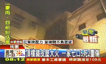 中國臺灣網8月10日消息 據(jù)臺灣媒體報道,今天凌晨在桃園中壢發(fā)生一起重大火警,就在大家正熟睡的時候,巷弄內的一棟3層樓突然竄出陣陣濃煙,火舌迅速延燒,短短10多分鐘,整棟房子被燒的面目全非,睡在一樓82歲中風的爺爺,因為行動不便無法順利逃生,其他的家人只能往4樓加蓋的鐵皮屋奔逃,但是被濃煙嗆傷,爸媽、奶奶和大女兒4人活活被燒死,大兒子和小女兒緊急從4樓陽臺跳下逃生,卻摔成重傷。