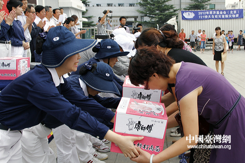 在捐獻(xiàn)儀式上,部分災(zāi)民流下了感動(dòng)的淚水。(中國(guó)臺(tái)灣網(wǎng) 馬迪 攝) 第1頁第2頁第3頁