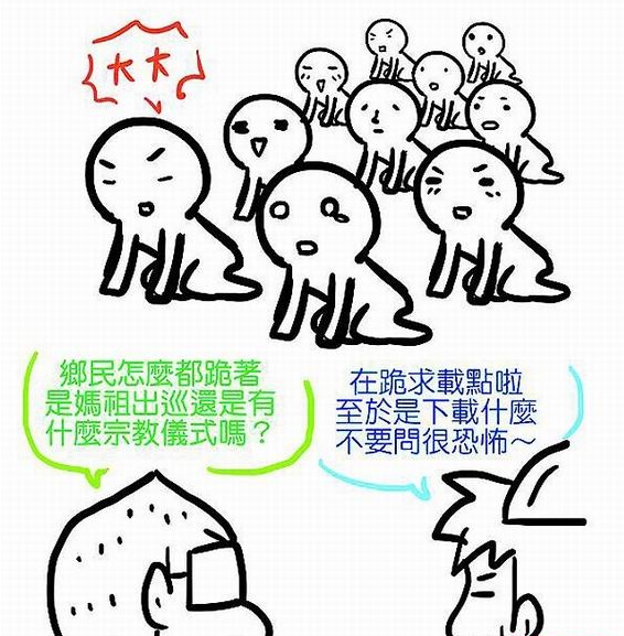 臺灣插畫家“海豚男”將鄉(xiāng)民“跪求”艷照下載點現象畫成漫畫。來源:臺灣媒體