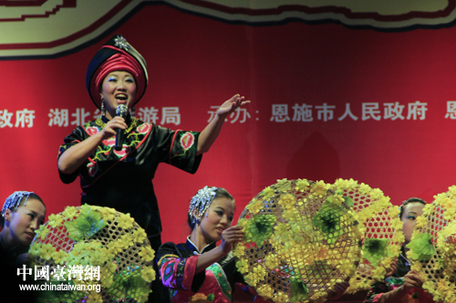 恩施市山民歌匯25日晚間上演,圖為恩施演員演唱山民歌。(中國臺灣網 楊麗 攝)