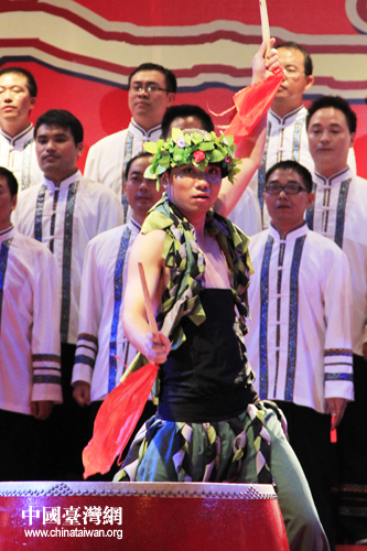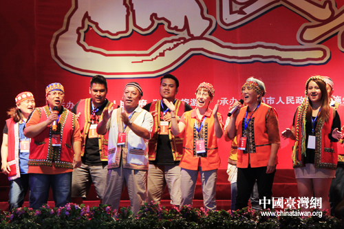 恩施市山民歌匯25日晚間上演,圖為臺灣少數(shù)民族代表登臺表演。(中國臺灣網 楊麗 攝)