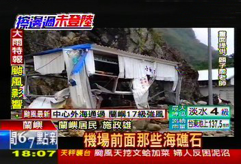 當(dāng)?shù)孛癖娒枋稣f(shuō),災(zāi)后(蘭嶼)道路中斷,連機(jī)場(chǎng)跑道也不保,島上食物及物資嚴(yán)重缺乏,災(zāi)情慘重。