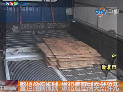 新北市淡水區(qū)慣犯開藍(lán)色小貨車竊取工地鋼板被逮,突然倒地猝死。(圖片來自臺(tái)媒)