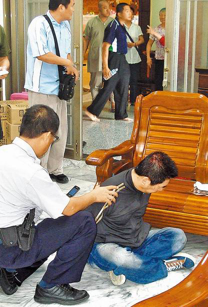 陳男一見住持,二話不說掏出手槍,朝住持連開兩槍,第一槍打中住持右手臂及肚子,第二槍卡彈,當(dāng)時在廳旁的住持司機(jī)何其霖聽到槍聲沖入廳內(nèi),抓住陳手臂,并朝陳頭部砸擊,待槍枝被打落后,雙方一陣扭打,陳不敵被制伏,警據(jù)報趕到,查扣陳所拿的改造手槍,彈匣內(nèi)有9發(fā)子彈。