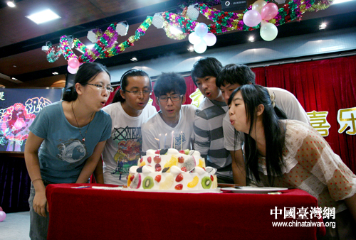 在聯(lián)歡會上,北京市臺聯(lián)還為大家準(zhǔn)備了北京市公交卡、稻香村月餅等小禮物,并為在9月過生日的六位臺生送上生日蛋糕和生日祝福。(中國臺灣網(wǎng) 普燕攝)