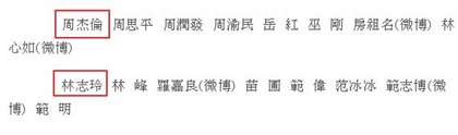 委員會(huì)列出的演員名單中出現(xiàn)了周杰倫、林志玲等臺(tái)灣明星。圖片來源臺(tái)灣媒體