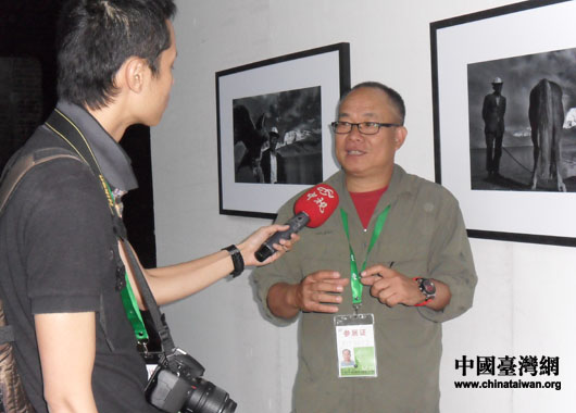 臺灣中視記者采訪臺灣攝影大師林添福先生。(中國臺灣網(wǎng) 郭慶娜 攝)