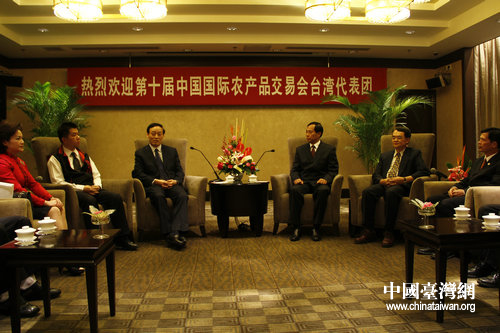 農(nóng)業(yè)部副部長余欣榮會見第十屆農(nóng)交會臺灣代表團(tuán)。(中國臺灣網(wǎng) 郭瑩瑩 攝)