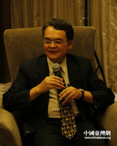 財團法人農(nóng)村發(fā)展基金會執(zhí)行長盧虎生在會見中發(fā)表講話。(中國臺灣網(wǎng) 郭瑩瑩 攝)