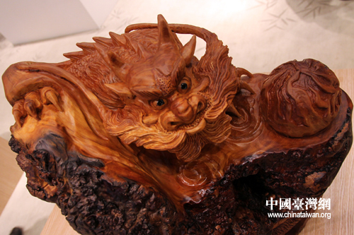 阿里山檜木雕塑作品——祥龍呈錦 華夏升平。(中國臺灣網(wǎng) 馬迪 攝)