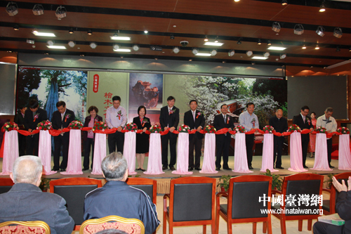 多位嘉賓為“臺灣阿里山檜木文化藝品展”剪彩。(中國臺灣網(wǎng) 馬迪 攝)