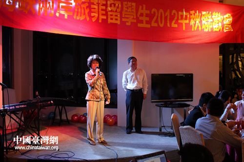 中國臺灣網(wǎng)10月4日消息 清風送爽、丹桂飄香。9月30日下午,菲律賓呂克昂大學樹灣賓館鮮花錦簇、紅燈高懸,充滿節(jié)日的喜慶氣氛,菲律賓中國留學生聯(lián)合會在這里隆重舉辦以“親情、友情、中華情”為主題的2012海峽兩岸旅菲留學生中秋聯(lián)歡會。中國駐菲律賓大使馬克卿女士、文化參贊潘峰先生和海峽兩岸120多名留學生齊聚一堂,用歌聲、琴聲、歡笑聲將兩岸學子的情誼連接起來,晚會變成了歡樂的海洋。