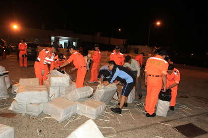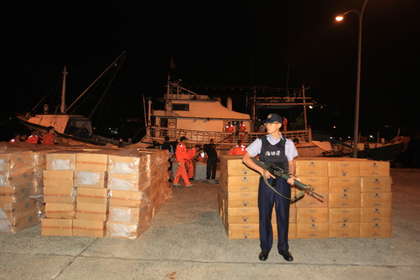 中國臺灣網(wǎng)10月11日消息 據(jù)臺灣媒體報道,臺灣藝人鄭元暢目前在臺當(dāng)局“海巡二總隊”服役,今天凌晨1時許在八斗子漁港1艘漁船密艙查緝500箱私煙、市值約800萬元新臺幣,他穿防彈背心、荷槍實彈戒護相當(dāng)醒目。