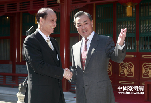 10月17日中午,中共中央臺辦、國務(wù)院臺辦主任王毅在北京釣魚臺賓館會見;鶗麻L林中森。(中國臺灣網(wǎng) 田云鵬 攝)