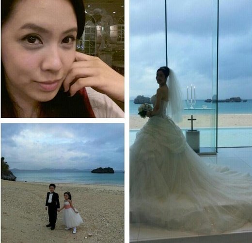 臺灣女藝人洪百榕(左上)赴沖繩參加顧婕(右)的婚禮。(圖片截取自洪百榕的微博)