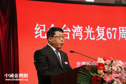 梁國揚強調(diào),67年前,兩岸同胞用生命和鮮血共同贏得了抗日戰(zhàn)爭的偉大勝利,臺灣重新回到了祖國的懷抱;67年后的今天,兩岸關(guān)系歷經(jīng)風(fēng)云坎坷,站在了新的歷史起點上。讓我們共同努力,牢牢把握兩岸關(guān)系和平發(fā)展的主題,深化兩岸各領(lǐng)域合作,積極擴(kuò)大兩岸各界往來,堅決反對“臺獨”分裂活動,堅決維護(hù)兩岸關(guān)系得來不易的良好發(fā)展局面,共同為鞏固深化兩岸關(guān)系和平發(fā)展、實現(xiàn)中華民族偉大復(fù)興而努力奮斗!