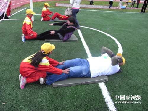 不許賴皮,必須做完十個仰臥起坐。ㄖ袊_灣網(wǎng)記者 蕪同攝)