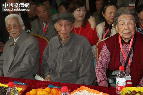 天津93歲老人任孝英(左)、92歲老人金錫佑(中)與來自臺灣90歲的王春英女士(右)是當天參加活動年齡最大的三位老人。(中國臺灣網(wǎng) 郭瑩瑩 攝) 第1頁第2頁第3頁