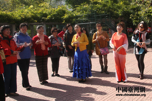兩岸社區(qū)工作者即興進(jìn)行了歌舞合演《愛在人間天堂》。(中國臺(tái)灣網(wǎng) 郭瑩瑩 攝)
